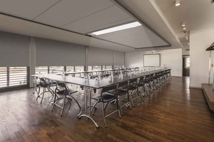 Die Verdunkelung ist ein innenliegender Sonnenschutz, der zugefahren einen Lichteintritt verhindert und den Raum zuverlässig verdunkelt. Die spezielle Konstruktion der WAREMA Verdunkelungsanlagen bietet damit sowohl vertikal als auch horizontal eine Eignung für Räume mit sehr hohen Anforderungen.